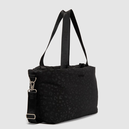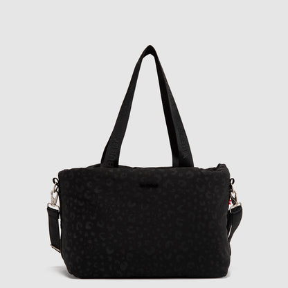 ¡Viaja con estilo salvaje! Nuestra Tote Travel Essential con print de cheeta es la aliada perfecta para tus aventuras. Incluye un sleeve para enganchar a tu maleta y un compartimento seguro para laptop de 13". Para cuidarla, solo usa un paño húmedo y seca a la sombra.